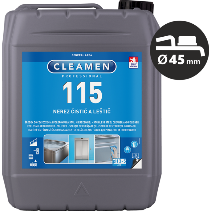 Hinterlässt die Oberfläche glänzend und streifenfrei. Geeignet für alle Edelstahloberflächen im öffentlichen Bereich, im Küchen- und Sanitärbereich sowie im Wellnessbereich. Besonders geeignet für Aufzüge, Geländer und große Edelstahlflächen.