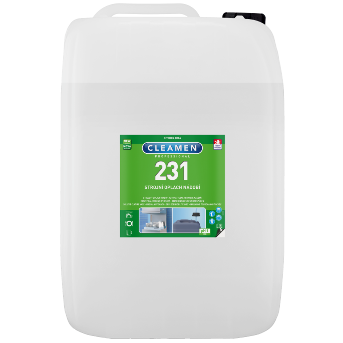 Folyékony, erősen koncentrált öblítő és fényesítő szer professzionális mosogatógépekhez és üvegedényekhez automatikus adagolással. Megakadályozza az ásványi lerakódások kialakulását, és eltávolítja a szennyeződésmaradványokat a mosott edényekről, fényes megjelenést kölcsönözve az edényeknek. A Cleamen 230 gépi mosogatószer vagy a Cleamen 232 ACTIVE gépi mosogatószer után a mosás második fázisának (öblítés és semlegesítés) alkalmas.