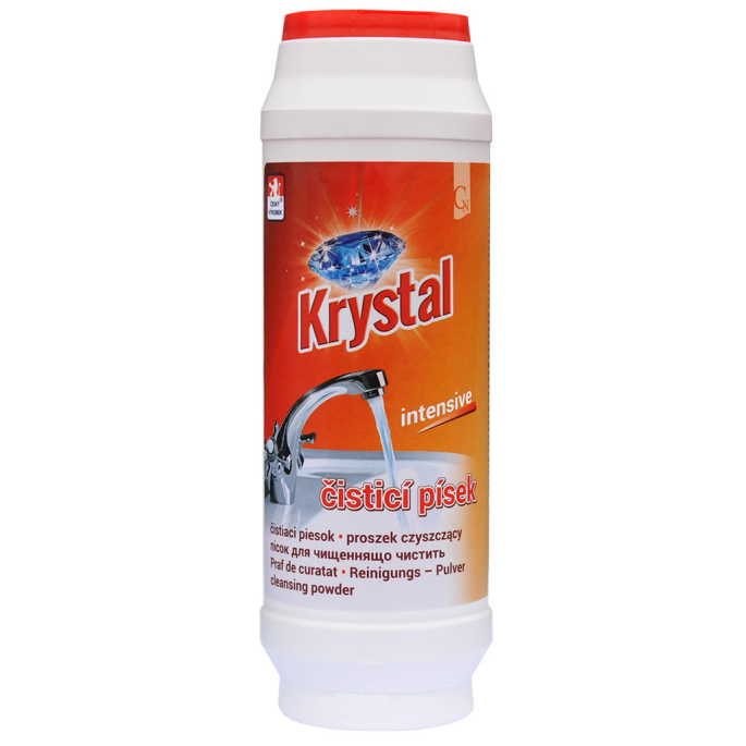 Prípravok je určený na čistenie kuchynských drezov, riadu, kúpeľňových vaní, umývadiel a obkladov. Kryštál je svojou receptúrou postavený na úroveň tých najjemnejších práškových čističov. Nezanecháva šmuhy, je vhodný na pripáleniny.